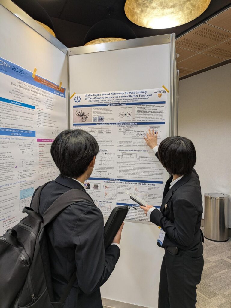 にて,M2の田中さんが“Stable Haptic Shared Autonomy for Wall Landing of Two-Wheeled Drones via Control Barrier Functions”について発表を行いました.