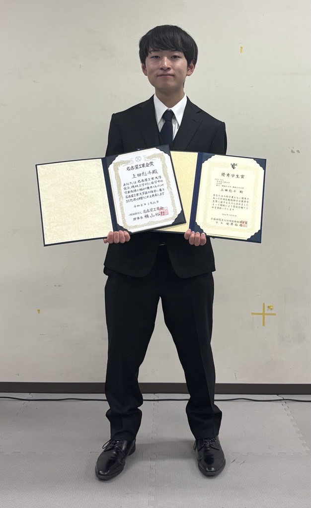学業成績が極めて優秀であった学生に贈られる名古屋工業会賞をB4の上田さんが受賞しました。